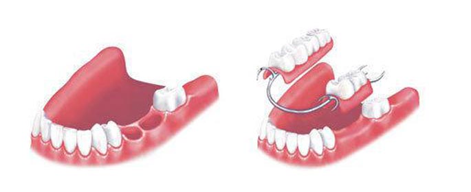 利用天然牙和基托覆盖黏膜及骨组织作支持依靠镶牙的固位体和基托的固位作用,人工牙恢复缺失牙的形态和功能,并用基托材料恢复缺损的牙槽嵴及软组织形态,患者能够自行摘戴的一种修复体。