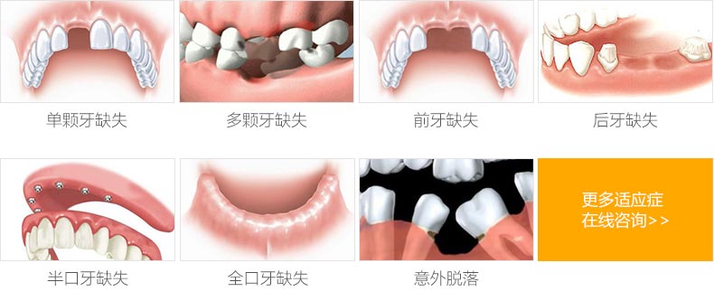 3、种植牙:适用于所有牙齿缺失患者,温度牢靠,美观舒适,不损伤邻牙,以及牙槽骨的萎缩和吸收,使用寿命半长久性。