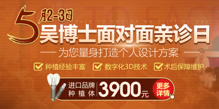 不敢大口吃饭?不敢开怀大笑?不敢露出牙齿?是什么毁了了你的自信笑容?种植牙修复会给您不一样的体验。种植牙因具有不易损伤邻牙、牙齿功能恢复较好、异物感较小等优势,被称为人类的第三副牙齿。为帮助更多的缺牙患者种上好牙,安心吃好饭,5月2-3日,北京种植专家吴博士在沈阳康贝佳口腔医院亲诊,吴博士拥有高超的种植技术与丰富的临床经验,成功案例不计其数,让很多的缺牙市民感受到了先进的种植牙技术,找回了一口“幸福”好牙!<<<我要预约专家看牙
