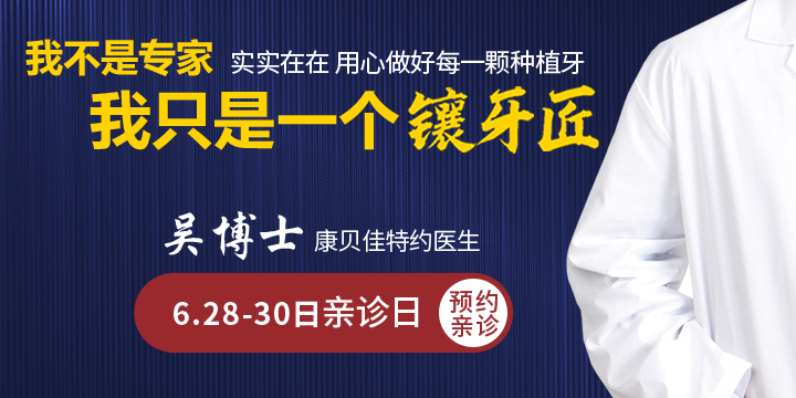 牙齿缺失给老人的生活带来诸多不便,更会影响身体健康。对于缺牙老人而言,大的愿望莫过于一口好牙,让他们吃饭更香、身体硬朗。缺牙该怎么办?哪种修复方式可以一劳永逸?为帮助缺牙市民找回健康,康贝佳特邀口腔种植专家解读有关缺失牙修复问题,为市民免费提供口腔保健指导,长期缺牙、疑难牙缺失、多颗牙齿缺失、假牙佩戴不适等患者均可报名。6月28-30日,北京吴博士将会在我院开展为期三天的亲诊活动。望广大市民朋友互相通告,不要错过此次专家亲诊机会!<<<我要预约专家亲诊