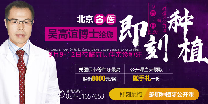 9月10日,由沈阳康贝佳口腔举办的“种植牙公开课”活动即将开启,对于想要做种植牙的市民,不妨先听听医生主讲的公开课再做种植牙!本次公开课的主讲人是来自北京种植医生的吴高谊博士,吴博士来到沈阳还将带来为期三天(9月9-12日)的亲诊活动。